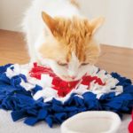 隠したオヤツをにおいで探したり、音が鳴るオモチャ探したり、穴からじゃらしを出して一緒に遊べるマットです。